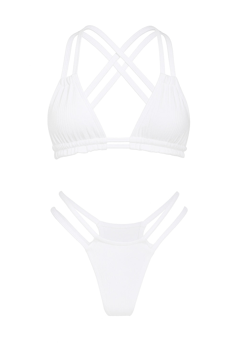The top has a triangle cut out with criss cross back. This swimsuit is also reversible